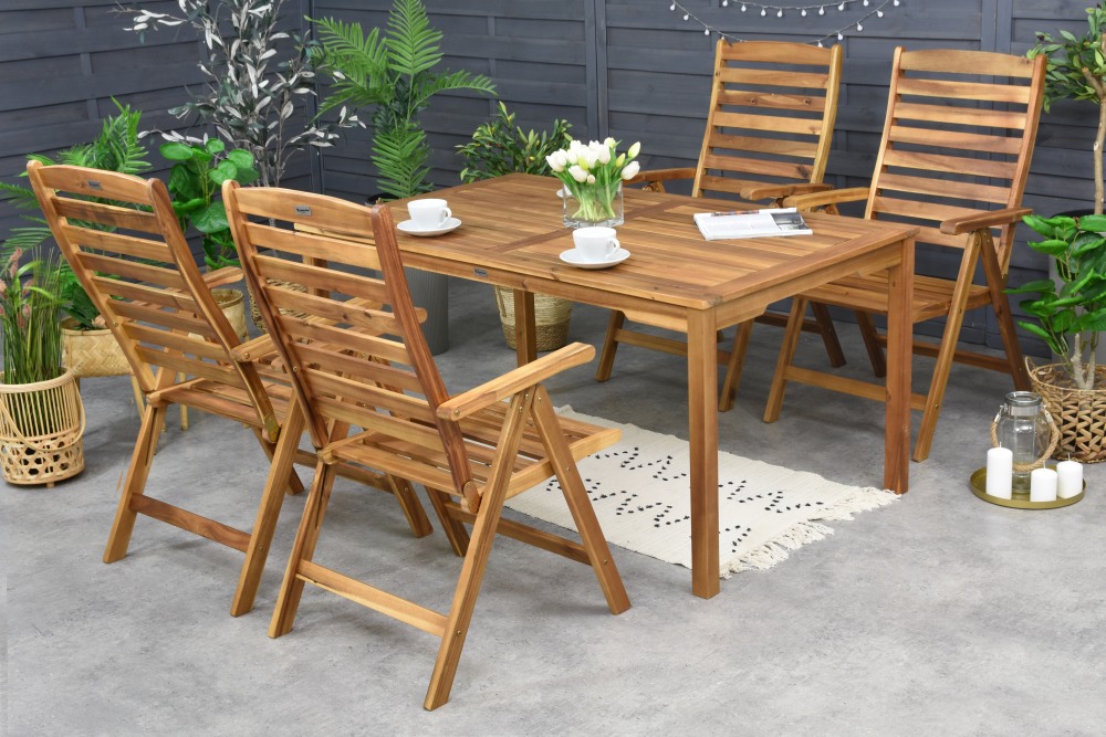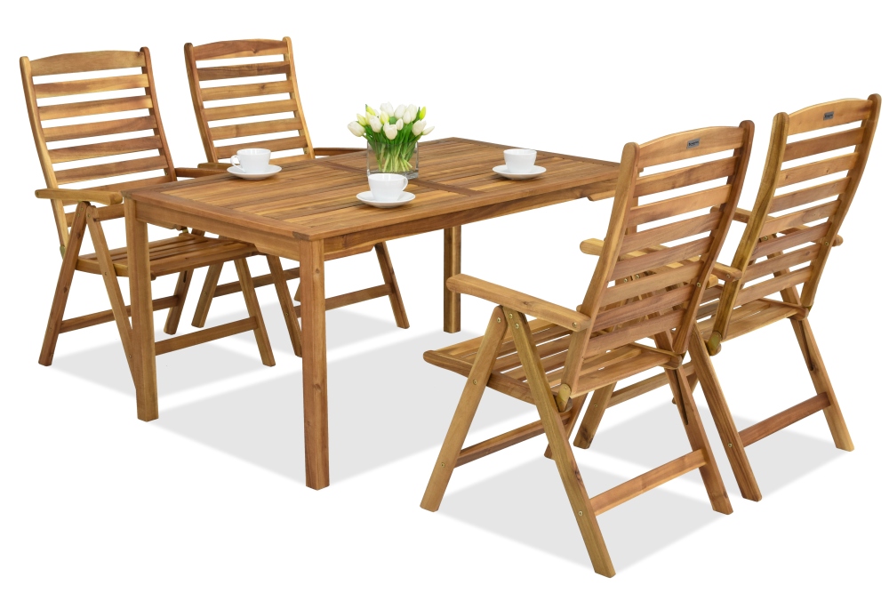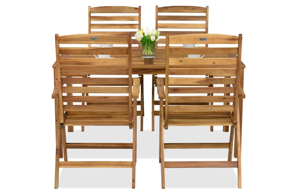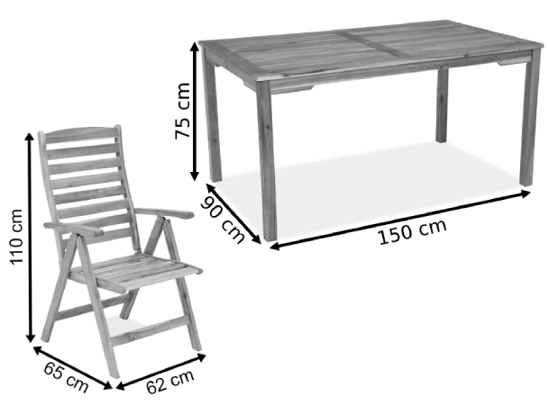 - De stoelen en tafel zijn gemaakt van exotische Acacia - hout met hoge dichtheid.