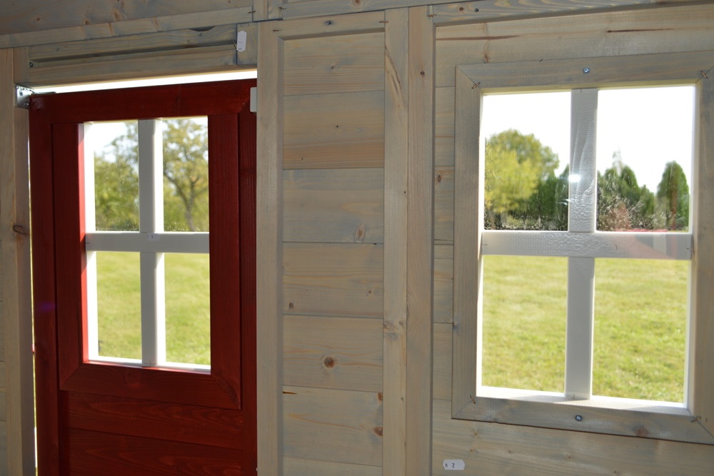- Het huisje heeft drie ramen die natuurlijk licht binnenlaten.