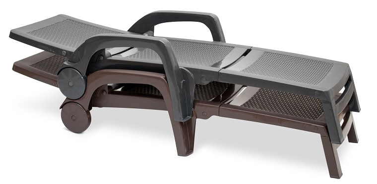 - Het ligbed is heel gemakkelijk te verplaatsen – dankzij de lichtgewicht constructie en de 2 wieltjes onder de rugleuning.