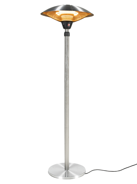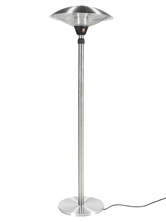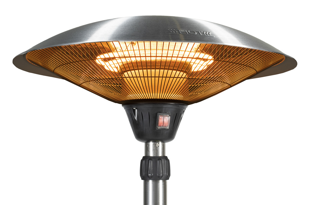Le radiateur infrarouge moderne sur pied Hadar offre un confort de chauffage approprié sur la terrasse ou dans la tonnelle pendant les soirées ou les journées plus fraîches.