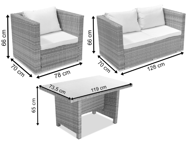 - De meubels zijn geschikt voor gebruik buiten. Ze hoeven niet onderhouden te worden.