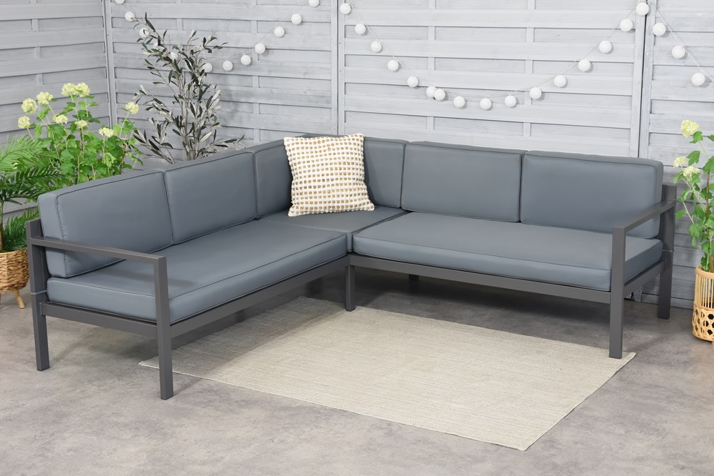 De Porto tuinhoek in antraciet is een stijlvolle en functionele oplossing voor vier personen, ideaal om buiten te ontspannen. Dankzij het minimalistische ontwerp past hij in elke tuin, terras of balkon. Dankzij de praktische functies en duurzame materialen is de Porto hoekbank comfortabel in gebruik en gemakkelijk te onderhouden.